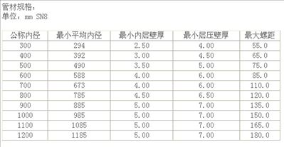 《CJ/T 225-2011 埋地排水用钢带增强聚乙烯(PE) 螺旋波纹管》标准对管材小内层壁厚、小层压壁厚、大螺距、小钢带厚度、小防腐层厚度等作了要求,这些要求均是对管道质量及连接的基本保证。