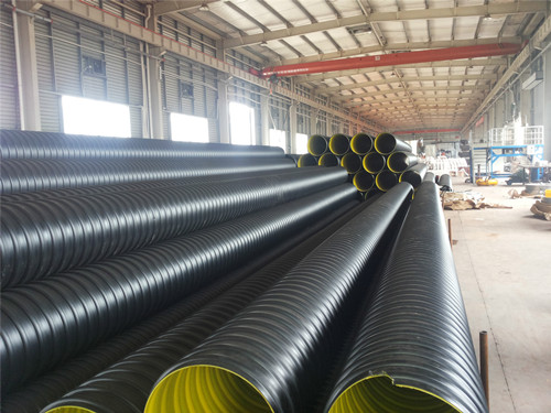 钢带波纹管是借鉴好的金属塑料管材复合技术而的一种PE与钢带熔融复合的缠绕成型的结构壁管材。管壁结构由3个层次构成,以高密度聚为基体,以螺旋缠绕成型的高密度钢带为增强体,采用的工艺,将钢带与高密度聚融为一体,使其既具有塑料管的柔韧性,又具备金属的刚性。